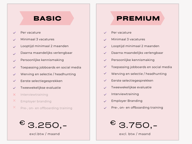 Het abonnement wordt aangeboden tegen een vast maandelijks tarief, afhankelijk van het aantal vacatures dat moet worden ingevuld.